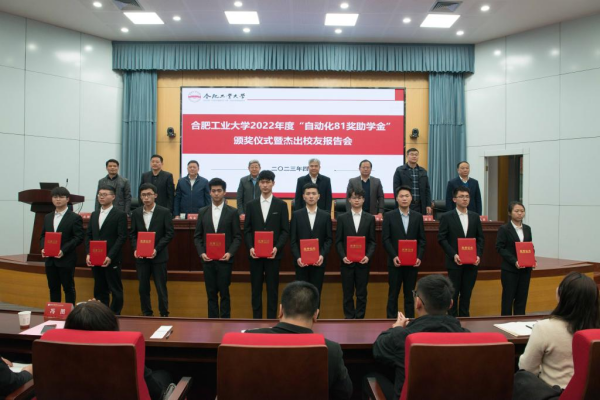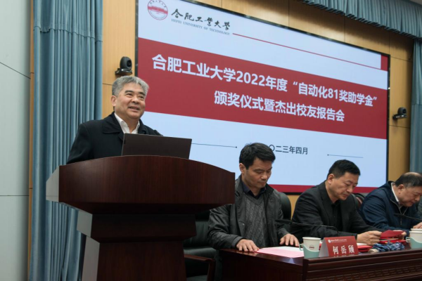 第八届“自动化81奖助学金”颁奖仪式暨杰出校友报告会在学术会议中心一楼大报告厅举行。校党委常委、副校长刘晓平,“自动化81奖助学金”捐赠校友代表、深圳达实智能股份有限有限公司董事长刘磅、蚌埠电子信息产业技术研究院院长邵建强、中国银行蚌埠分行工会主席肖金元、合肥航天液压公司董事长戴林书、合肥华星集团董事长、合肥力宏科技公司董事长冯图等出席仪式,学校校友会办公室、继续教育学院、91免费