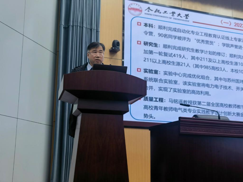 教学副院长黄海宏回顾了2022年学院教学工作并从本科、研究生、实验室、质量工程等方面汇报了2023年教学工作安排,对即将开展的硕士研究生复试工作进行了初步部署。
