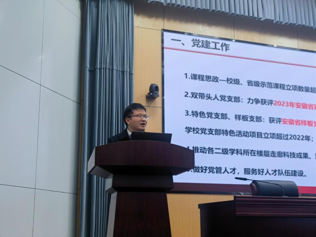 在屯溪路校区学术会议中心大报告厅召开了2023年工作布置会。副院长孙伟主持会议,学院领导班子成员及全院教职员工参加了会议。