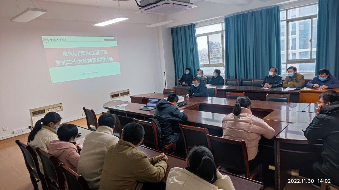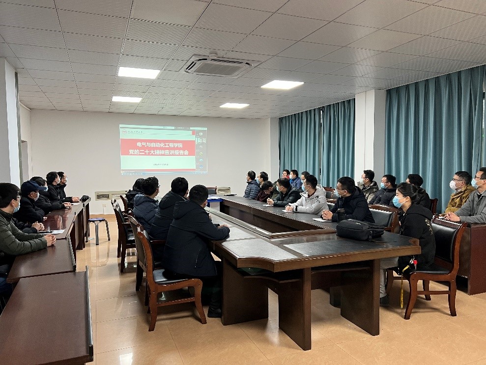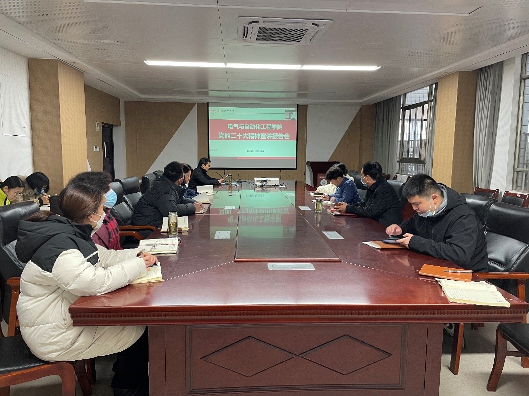 在逸夫楼召开学习宣传贯彻党的二十大精神宣讲报告会,院党委书记何岳颀同志作宣讲报告,全院180余名教职工通过线上线下结合的方式参加学习。