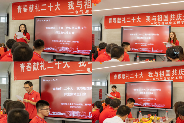 向念文在致辞中表示在国庆节假期、校庆日即将到来之际,师生齐聚一起过集体生日,为二十大献礼、为祖国祝福、为母校喝彩、为同学庆生,就是让大家感受到国家的繁荣昌盛、学校的蓬勃发展、学院的温暖温馨,铭记峥嵘岁月、扬帆砥砺前行。他向同学们介绍了学院的发展历程、学科特色、科研成就,强调了一代代工大电气人工业报国,主动服务国家和社会的精神激励着年轻学子不辱使命、不负韶华,绘制青春最靓丽的画卷,并勉励全体年轻学子以提升能力为学习目标,主动培养独立做事能力、创新能力、表达能力和领导力,争做德智体美劳全面发展的新时代青年学子。