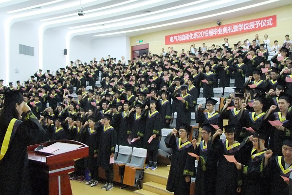 6月14日上午,宣城校区电气与自动化系2019届毕业典礼暨学位授予仪式在图书馆报告厅隆重举行。学院党政领导,教师代表、部分学生家长和全体毕业生参加了典礼。毕业典礼由宣城校区学生工作办公室副主任代永建主持。