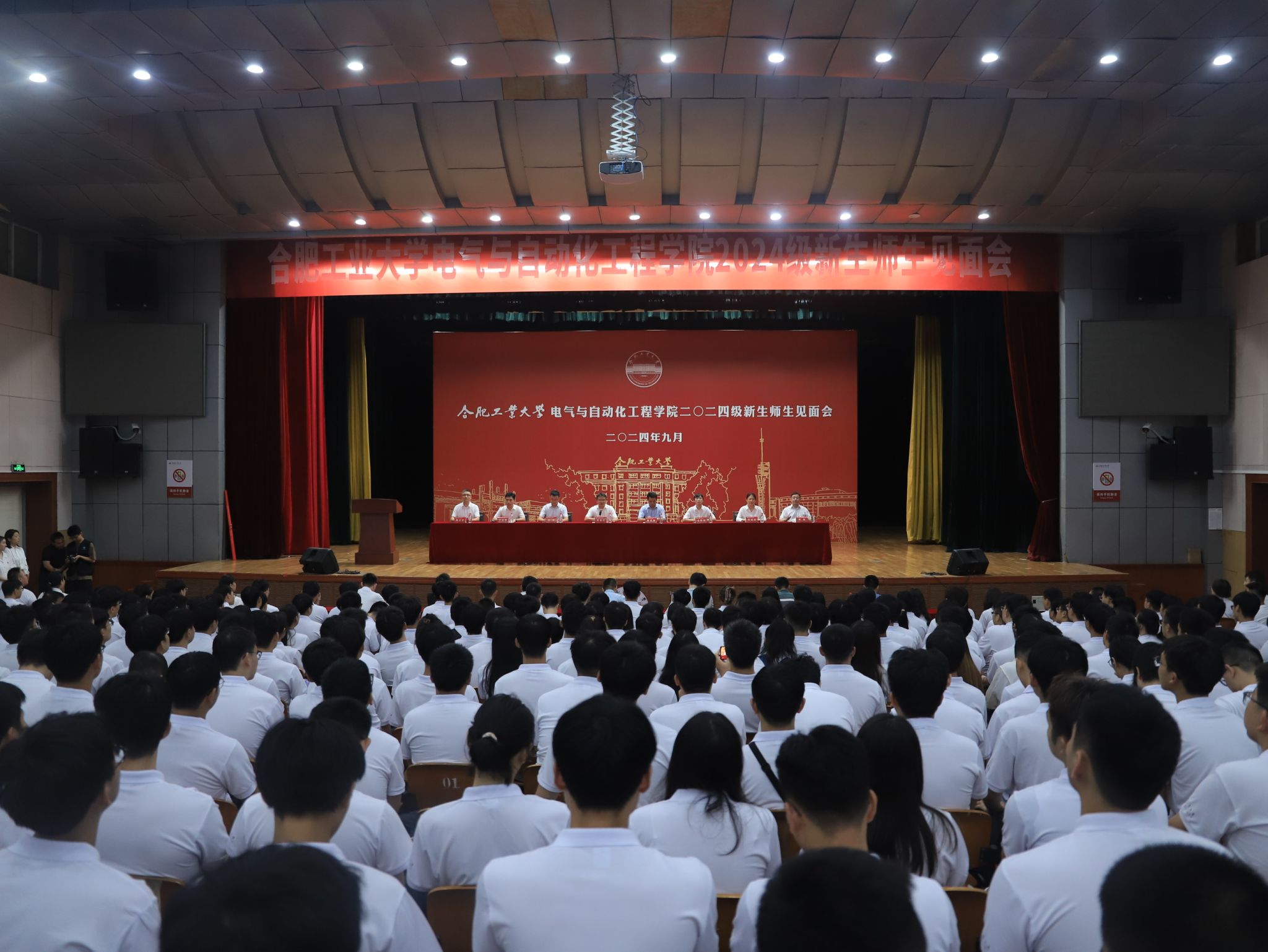 2024级新生师生见面会在斛兵礼堂举行。学院院长向念文,学院党委书记何岳颀,学院副院长黄海宏、学院副院长孙伟、学院副院长马铭遥、学院党委副书记兼纪委书记李丽鹏、学院电气工程系副主任张晶晶、电工与电子技术系党支部书记陈波、学院自动化系党支部书记陈立平、2024级各班级班主任出席大会。会议由学院党委副书记兼纪委书记李丽鹏主持。学院980名本科生、研究生新生齐聚斛兵礼堂,启航“熠闪”的青春。