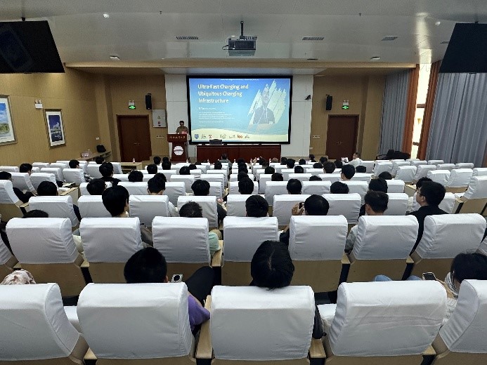 参观结束后,谭方东院士作题为“Ultra-fast Charging and Ubiquitous Charging Infrastructure”的专题学术报告。报告围绕电动汽车发展历程,技术现状、面临挑战等方面,深入探讨了可行的解决方案及未来技术发展方向,并对无线充电在电动汽车的应用前景进行了专业解读。报告结束后,与会师生就电动汽车的未来发展及科研攻关等议题展开了热烈讨论。