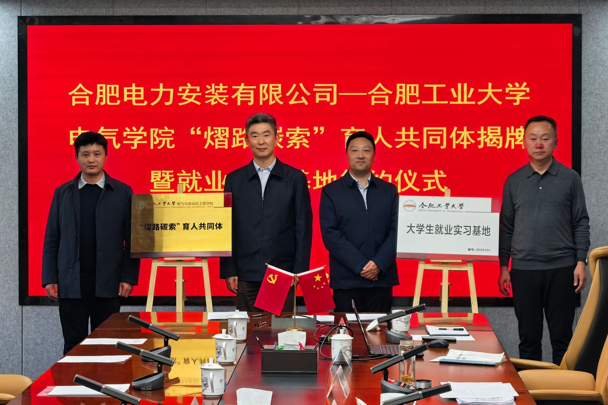 师生赴合肥电力安装有限公司参观交流,并举行“熠路碳索”育人共同体和大学生就业实习基地签约揭牌仪式。