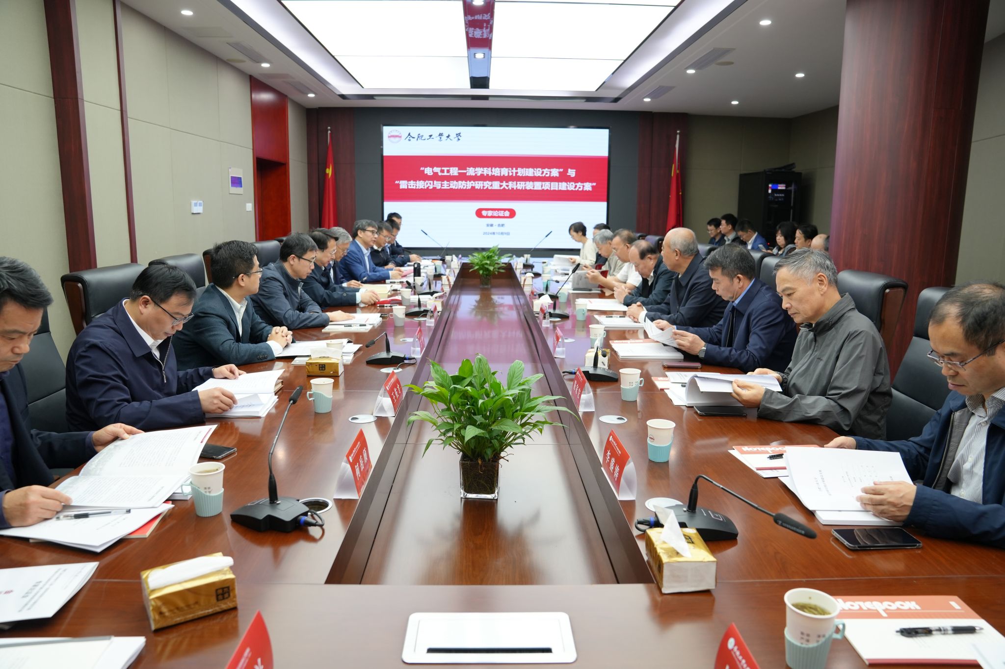 10月9日,学校组织召开了“电气工程一流学科培育计划建设方案”与“雷击接闪与主动防护研究重大科研装置项目建设方案”专家论证会。中国科学院院士程时杰、陈维江等来自高等院校和科研院所的11位校外专家参加了本次会议。校长郑磊,校党委副书记胡笑旋,副校长丁立健,党委常委、副校长汪萌出席会议。