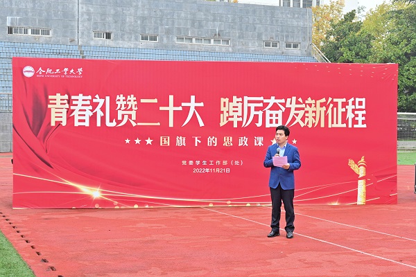 “青春礼赞二十大,踔厉奋发新征程”主题升旗仪式暨国旗下的思政课在屯溪路校区西操场举行,学院党委相关负责人、学院全体辅导员以及全体本科生、研究生3000余人参加活动。