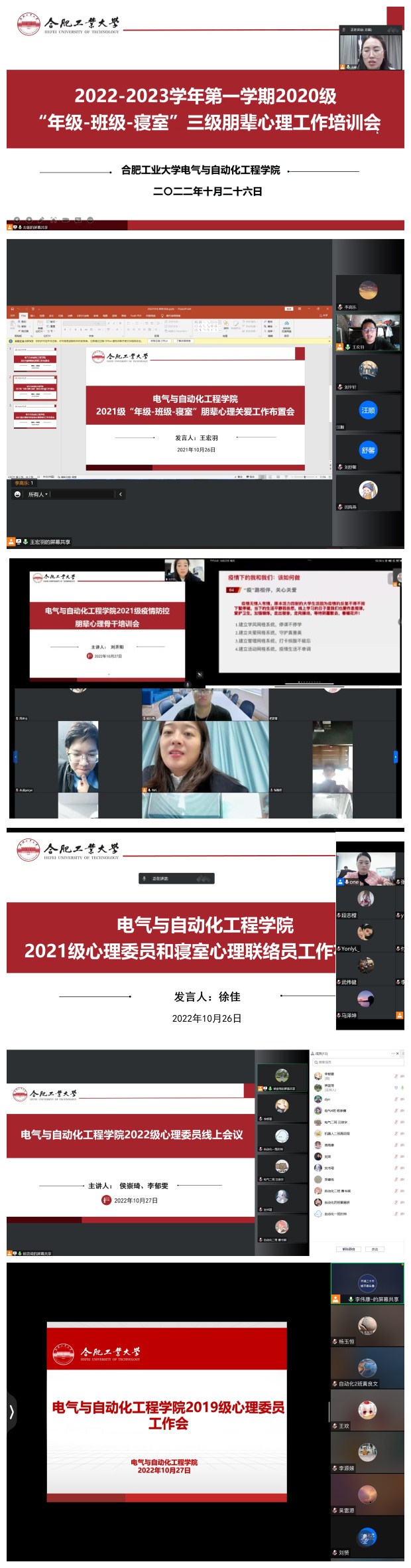 分年级围绕“‘熠’起护航,守护青春”主题开展线上心理骨干技能培训,由学院大学生辅导中心辅导员老师主讲,400余位心理骨干参加培训。