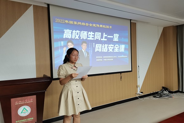 同上安全教育课堂,铸牢安全防火城墙。上周,学院组织学生党支部、团支部学生通过中国大学生在线视频号、快手、B站等直播平台及中国大学生在线官网,依托学生自然班、党校学员班等平台,观看了国家反诈中心民警刘明竹和哈尔滨师范大学辅导员、2021年全国“最美高校辅导员”刘国权联合为全国师生讲授的《高校师生同上一堂网络安全课》。课上,刘明竹警察讲解了什么是电信诈骗、电信诈骗的特点及其高发的诈骗类型。她建议高校师生在平时生活中坚持“三不一多”原则,即不点陌生链接、不接陌生来电、不被诈骗分子的话术打乱阵脚,转账汇款前多核实对方信息。同时,她还建议师生在手机下载安装国家反诈中心APP,及时接听96110、12381等反诈电话。刘国权老师结合工作经历,分析了校园内高发的电信诈骗类型及产生原因。他认为大学生只有做到加强法制学习、全面提升防骗观念,保护个人信息、避免重要敏感信息泄露,树立正确观念、坚信劳动创造幸福美好生活,才能有效防范校园电信网络诈骗。通过学习,同学们的网络安全知识得到增强,部分同学围绕国家网络安全周的主题进行了标语宣传。