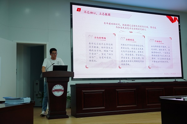 精神如炬,信念如磐,树立“报国”鸿鹄志,青年奋楫勇逐浪。研究生电力系统及其自动化专业党支部优秀学生党员许宇帆为全体成员上《五四精神传薪火,激昂青春献祖国——献礼“七一”青年在行动》党课,号召青年于实践中经风雨,练就时代硬脊梁,并围绕“双碳”目标下新能源产业的攻坚克难和光明前景,融合专业特色,进行别开生面的阐释。鼓励与会青年,有志者奋斗无悔,要在学习中审问慎思、明辨笃行,在工作生活中披荆斩棘,开拓辉煌未来。支部党员刘千皓、王丽洋分别以“以青春之梦,报祖国之情”“争做‘可为’年代的‘有为’青年党员”为题分享感悟。