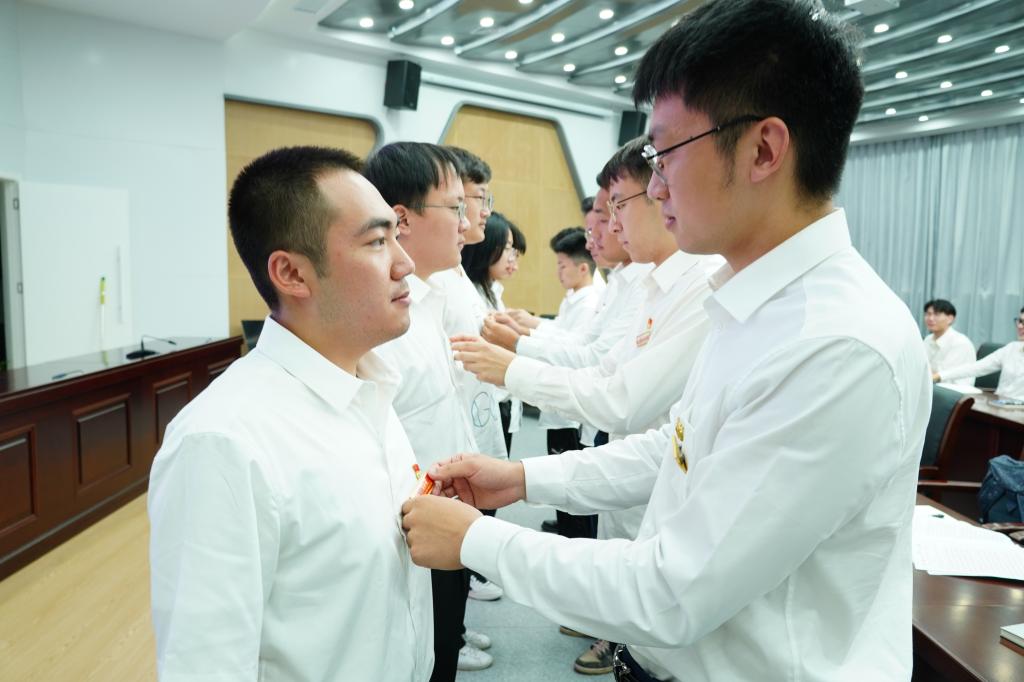 国之大者,厚植情怀,固本“信仰”扎根柢,青年扶摇敢铸魂。活动中,组织开展了党员身份亮化工程授牌仪式,由本科生第三党支部七名正式党员为“七一”前夕新发展的十名党员佩戴“亮身份”名牌。在支部副书记周雅雯的带领下,全体党员同志面向鲜红的党旗,庄严宣誓:“我志愿加入中国共产党……随时准备为党和人民牺牲一切,永不叛党。”铮铮誓言,铿锵恢宏,字字珠玑,初心弥坚。党员同志们纷纷表示,将矢志不渝、一以贯之,事不避难、义不逃责。