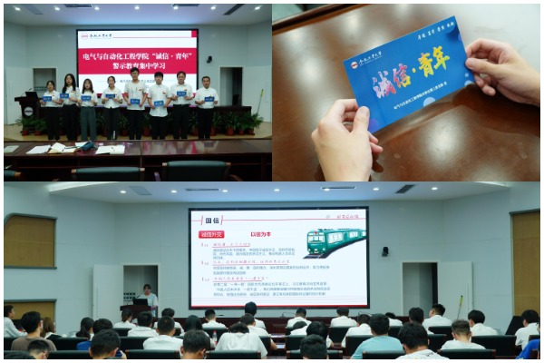 行有尺规,永葆敬畏,溯源“诚信”涤心魄,青年厚德璨星河。来自五个党小组的尹俊杰、武圣涵、胡齐菲、程乐、李亚捷以“诚信·青年”为主题,从新时代讲诚信的历史逻辑、价值逻辑及实践逻辑等方面展开分享。通过考试作弊、疫情防控瞒报漏报等“失信”案例,鞭策与会青年要秉持中华民族诚实守信传统美德,遵规守矩、遵纪守法,内诚于心,外信于人,将“诚信”作为终生必修课。会上还分发了“诚信考试倡议卡片”。