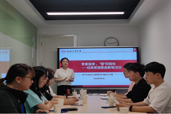 依托“声”动斛兵工作室在屯溪路校区5号宿舍楼学生社区举办“青春旋律,‘熠’同唱响”爱国歌曲教唱活动,学院部分学生文艺骨干参与了活动。