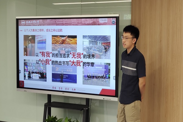 学校“十佳团支书”获得者王子怡、“十佳学生干部”获得者刘小通两位同学聚焦班团一体化建设做专题分享。王子怡从如何培育五四红旗团支部引入,生动形象地阐述了如何在班级建设中发挥团支部的思想引领作用,并结合典型案例,就如何提高团支部委员和班级委员的内生动力、如何提升班级凝聚力给出建议。刘小通聚焦班级向上向善发展,以“创新型”班级文化建设方案为例,立足党团建设、组织建设、制度建设、学风建设展开系统性地分享,为“班团一体化”建设模式的推进提供方案供给。