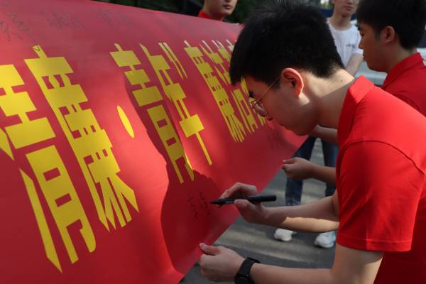 在逸夫楼前,发展对象班学员代表集体诵读了《91免费