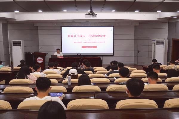 “在奋斗中成长,在坚持中蜕变——端正入党动机,以实际行动争取早日加入中国共产党”的专题党课在屯溪路校区斛兵报告厅举行,党委学生工作部(处)副部(处)长陈树海应邀上专题党课,200余名入党积极分子参与学习,在主教学楼215、216设立分会场进行线上直播。