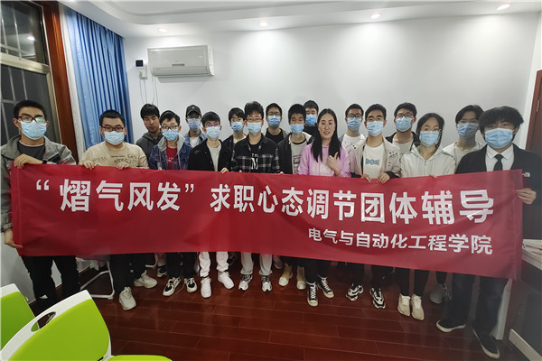 “熠气风发”求职心态调节团体辅导活动在屯溪路校区心理中心开展,18名2019级同学参加活动,活动领导者由大学生发展辅导中心古越老师担任。