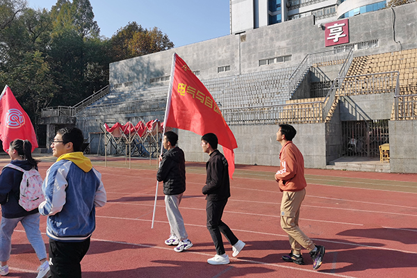 开幕式结束后,参与开幕式的各学院同学跟随院旗奔跑,并喊出“爱我工大,乐跑青春”的口号,一同围着操场开启了乐跑的第一圈,共同预祝活动顺利开展。