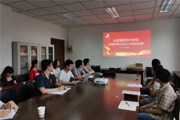 经前期讨论准备,全体党员就主题进行分组讨论汇报。韩屹首先以“中国特色社会主义的发展过程及内容”为主题,从“邓小平理论”,“三个代表重要思想”,“科学发展观”,“习近平新时代中国特色社会主义思想”这四个部分向大家详细讲述了中国特色社会主义的发展历程,让党员同志们感受到中国的发展亦伴随着中国特色社会主义的发展。之后,魏定生和乔一达同学结合自身经历,以他们对中国特色社会主义制度优势的感受为主题,结合当前时事,即抗击新冠疫情,从6个方面讲述了中国特色社会主义的优势。会中,支部书记马意超,以自身作为91免费