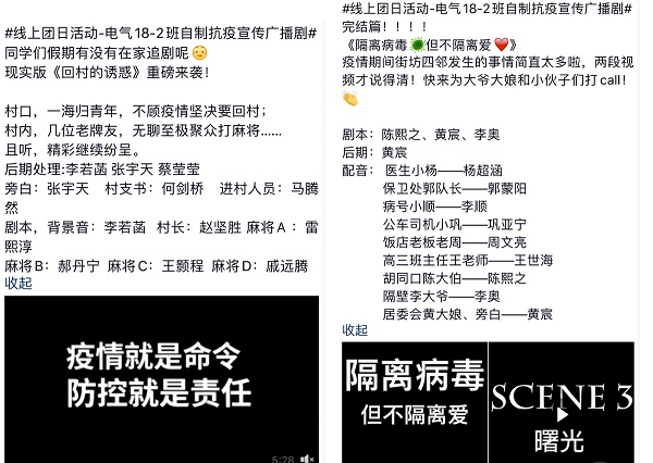 通过创作广播剧这样的新型活动形式,激发青年学生积极讨论,独立思考,为打赢疫情防控攻坚战贡献出自己的青春力量,诠释了当代大学生的家国情怀和责任担当。(图/文 李郁雯)
