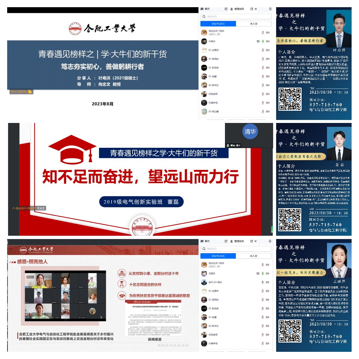 学院开展“青春遇见榜样之学·大牛们的新干货”2023级本科生线上专题交流会。活动邀请到2023年“校长奖”获得者董磊、2023年研究生年度人物叶寿洪、2020级优秀学生代表王丽洋参与本次分享,学院相关负责老师主持会议,学院2023级全体同学参加本次会议。
