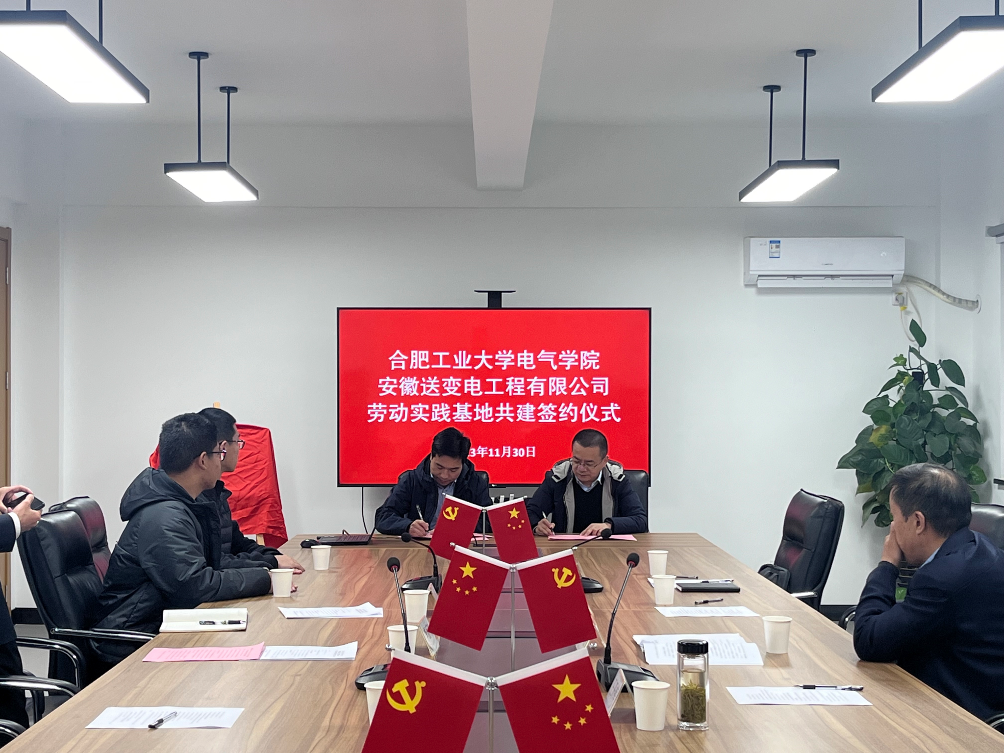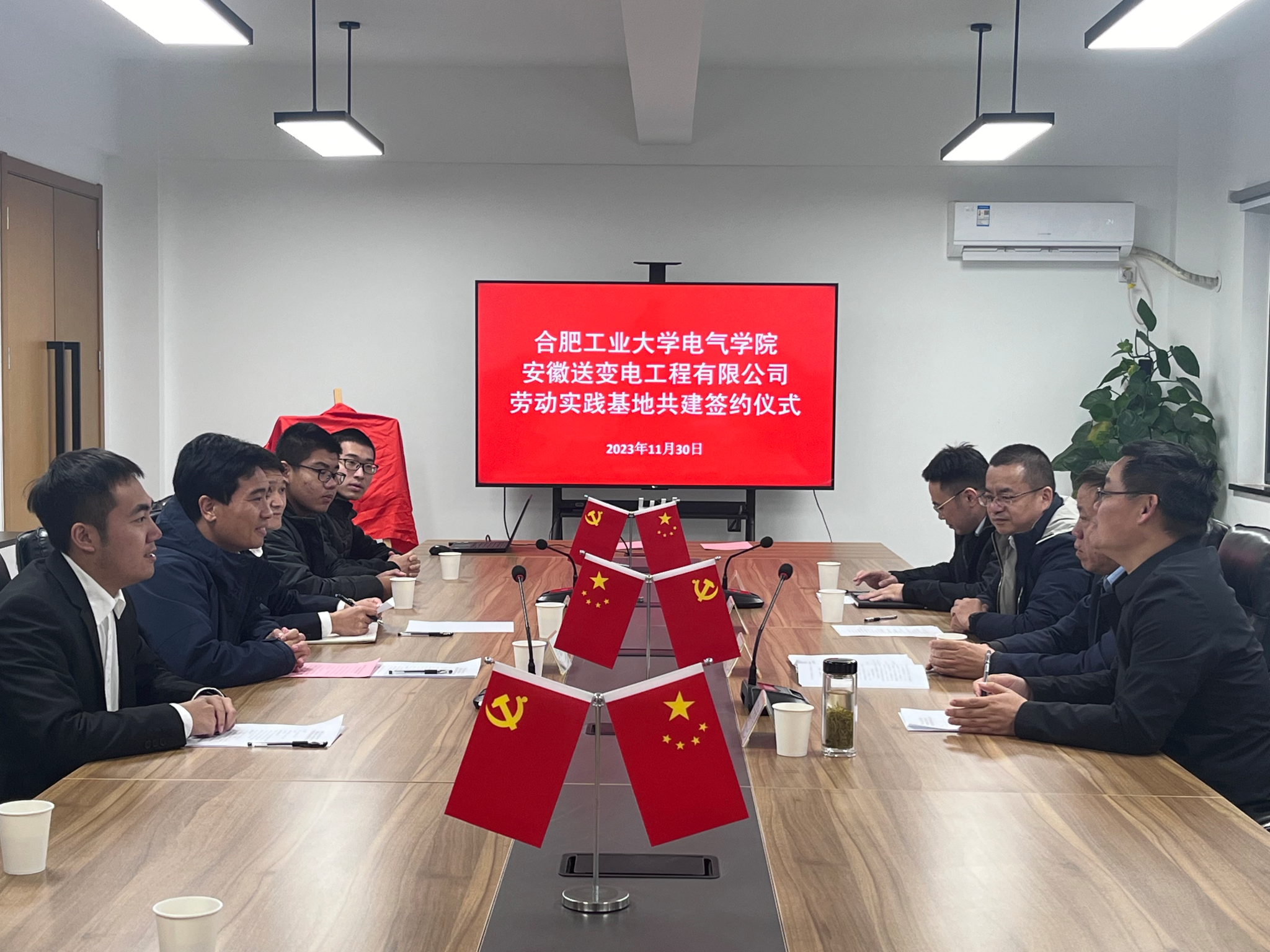 与安徽送变电工程有限公司共建大学生劳动教育实践基地签约揭牌仪式在送变电工业园会议室顺利举行,安徽送变电工程有限公司纪委书记、工会主席孔闻,全国劳动模范、安徽送变电工程有限公司三级职员王开库,安徽送变电工程有限公司党委组织部(人力资源部)主任陈文斌、副主任宋宇飞,91免费
