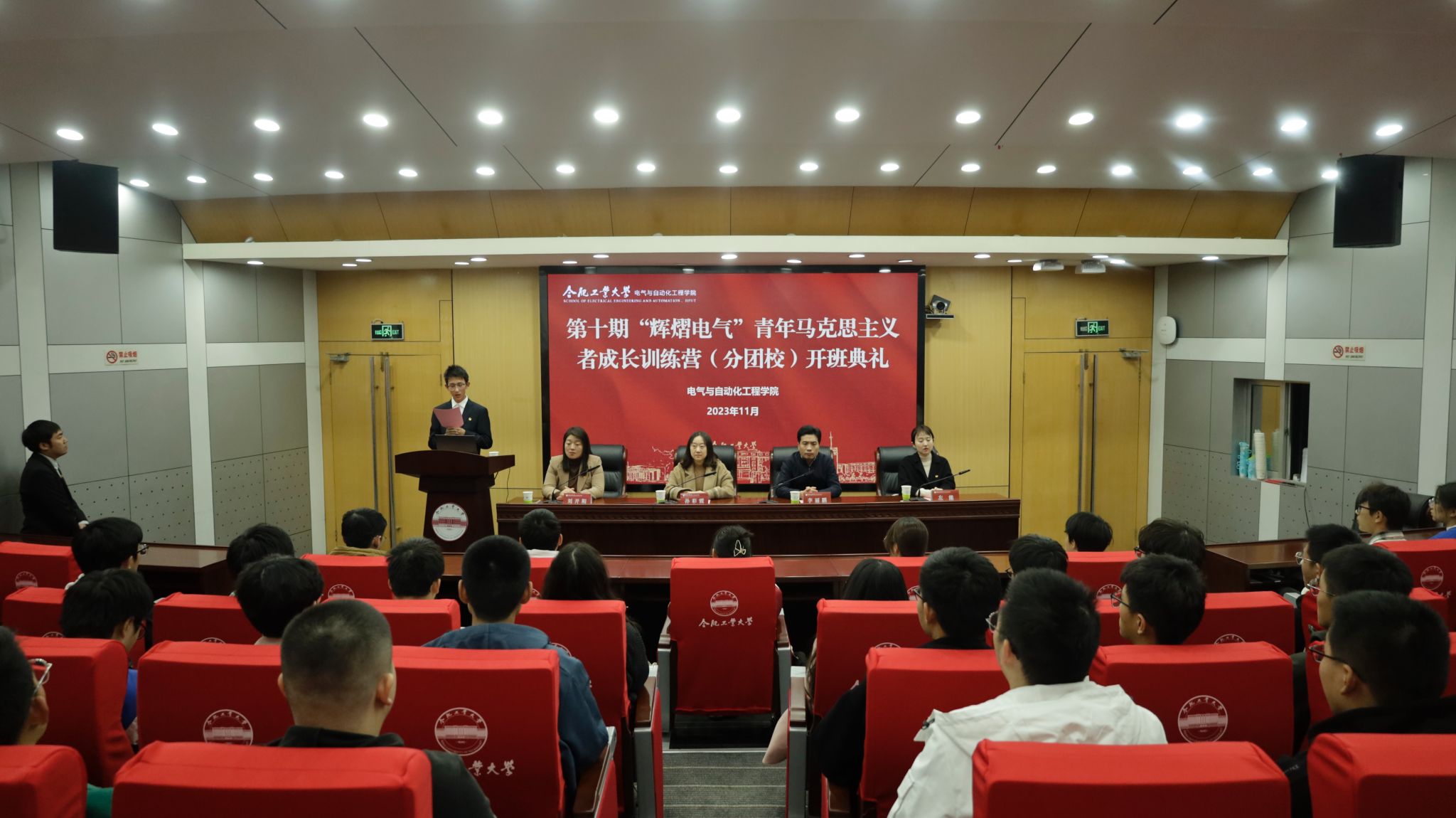 第十期“辉熠电气”青年马克思主义者成长训练营(分团校)的决定》,学院学生工作办公室主任兼团委书记刘开阳宣读本期训练营培养方案,学院学生工作办公室副主任兼团委副书记左能宣读训练营学员纪律要求,2023级机器人工程专业张家鸣同学代表全体学员发言,表示在接下来的学习中,要锤炼本领、全面发展,敢挑重担、堪当大任,知行合一,勿忘初心,用青春的加速度和创造力激荡起民族复兴的澎湃春潮,将青春的智慧和汗水撒进第二个波澜壮阔的百年目标!