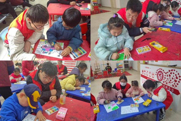 活动开始之前,志愿者提前与社区工作人员交流,初步了解孩子们的基本情况以及本次“四点半”课堂的授课内容。活动期间,在社区工作人员的帮助下,志愿者为每个孩子分发了蜡笔以及画纸,并在教室前面的显示屏上投放了图画的模板。志愿者坐在孩子们旁边,与孩子们分享涂鸦绘画的技巧与方法,发挥孩子们的想象力,帮助孩子们用五颜六色的蜡笔在雪白的画纸上绘出美丽的图画。在绘画课期间,孩子们也向志愿者分享了许多他们在校期间发生的趣事,志愿者认真倾听之余也向孩子们表达了自己的看法,帮助孩子们树立正确的人生观、世界观和价值观。活动结束后,孩子们举着自己完成的作品和志愿者合影。