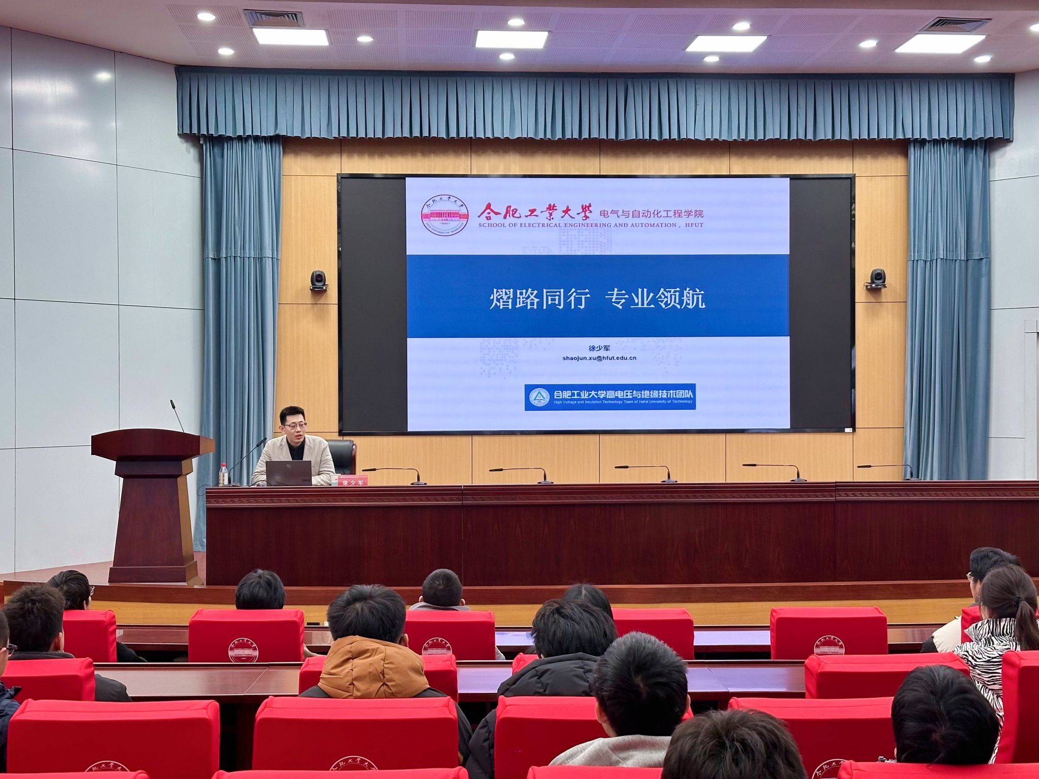 发展历史和学科建设、高电压与绝缘技术实验室师资力量和研究领域,指出学院多项研究成果被应用于大飞机、高速铁路、海上风电、新能源制氢等国家重大工程。鼓励学生以国家需求为己任,牢记“工业报国”使命,寻找学习内生动力,培养科学思维能力,做好职业生涯规划,快乐充实地度过大学时光。