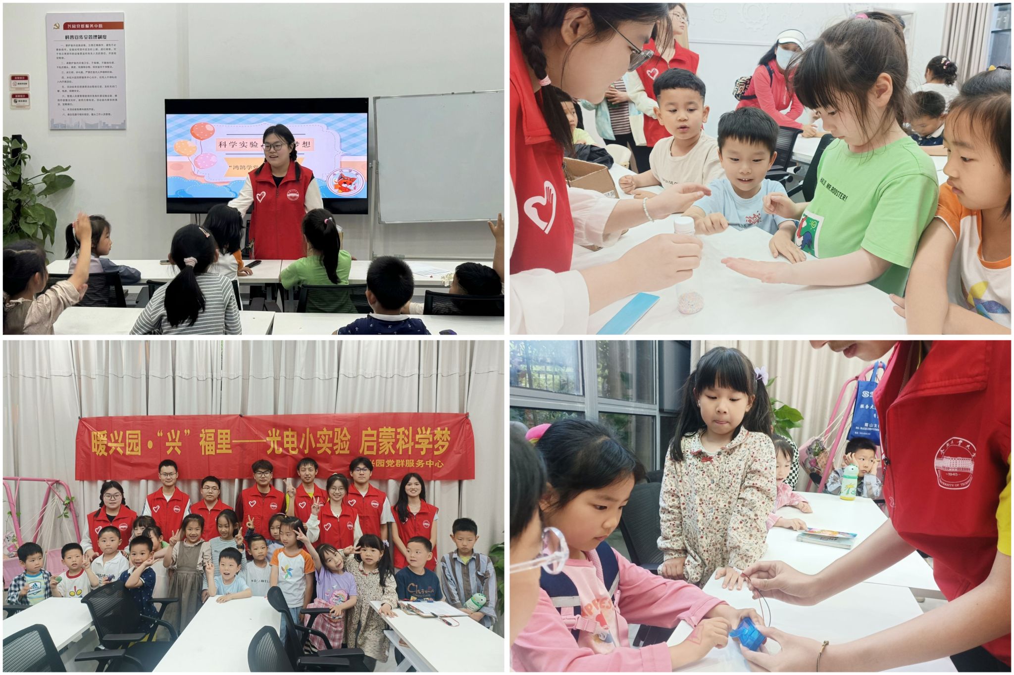 在兴园社区党群服务中心,学员结合日常生活中使用频率较高的设备,向小朋友介绍身边无处不在的“电现象”。通过摩擦起电、手摇发电机、电磁小马达等一系列精彩的电学小实验,加深小朋友对电的认识和感知,引导小朋友懂得“发电之理”。在欢快的笑声中,小朋友们更加坚定了节水、节电、绿色消费、绿色出行的节能信心,纷纷表达了自己的“节电之言”。