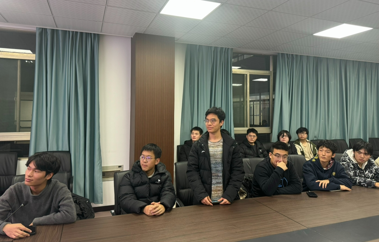 机器人工程专业2023级1班的郑卜俊宏同学,从机器人竞赛的起源、赛程安排、奖项类别等多个维度出发,详尽阐述了从选题策略、团队组建、信息搜集、方案设计到机器人原型开发与调试的完整链条。他不仅深入分享了备赛过程中遭遇技术瓶颈的破解策略、团队内部的高效沟通与协作机制,还谈到了面对挑战时的心理调适方法以及严格的时间规划与执行技巧。通过分享自己从机器人领域的初学者到熟练掌握各项技能的全过程,他进一步强调了扎实基本功对于机器人学习的重要性。他用自己的亲身经历告诉大家,无论是理论学习还是实践操作,都需要一步一个脚印,稳扎稳打,才能在机器人竞赛中脱颖而出,取得优异的成绩。机器人工程专业2023级2班、苍穹战队成员何兆卓同学结合近年来学校在RoboMaster高校系列赛中取得的成绩,为众人深入解读了这一赛事的内容。在交流中他谈到,参与这项高水平的机器人竞技赛事绝非仅凭一腔热血就能轻易驾驭。参赛者不仅需要拥有电子工程、计算机科学、机械设计等交叉学科的知识,更需在复杂多变的比赛环境中迅速定位问题并高效解决。更为重要的是,RoboMaster强调团队协作的力量,它要求每一位成员不仅要成为各自领域的“专家”,还要具备出色的团队合作精神,能够在紧张激烈的比赛中迅速响应、默契配合,共同克服难关。他勉励同学们跨领域学习,打破专业壁垒,拓宽学习视野,以促进团队内部的有效沟通与协作。