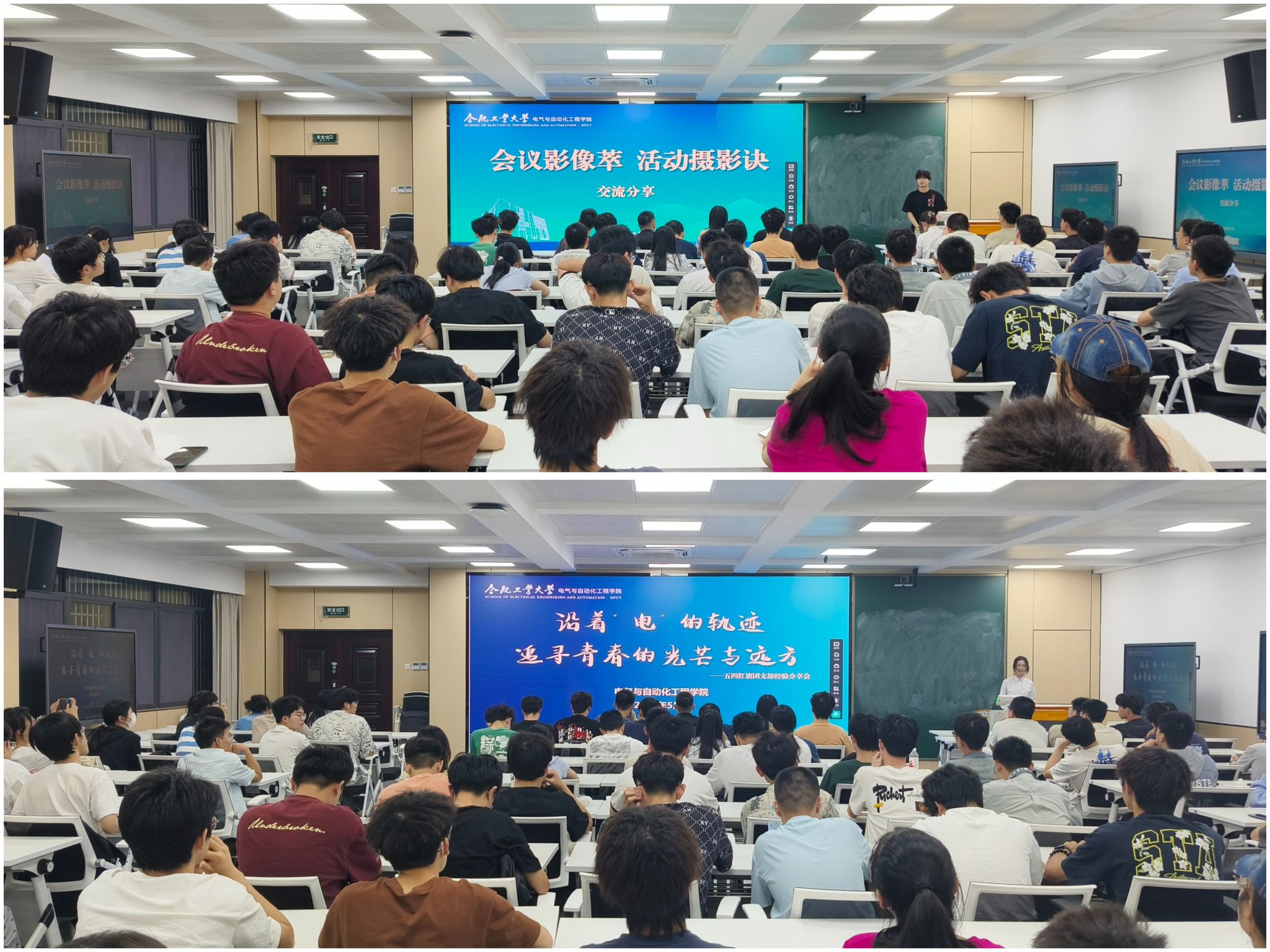 交流环节,辅导员助理代表、自动化专业2023级2班张竣军、电气工程及其自动化2023级创新实验班团支书贾凡分别围绕摄影技巧及照片解读、“五四红旗团支部”建设及团日活动组织做了分享。全体成员就校园安全与保障、网络诈骗辨别与防护、优良学风建立与维持、发展型资助做了讨论。
