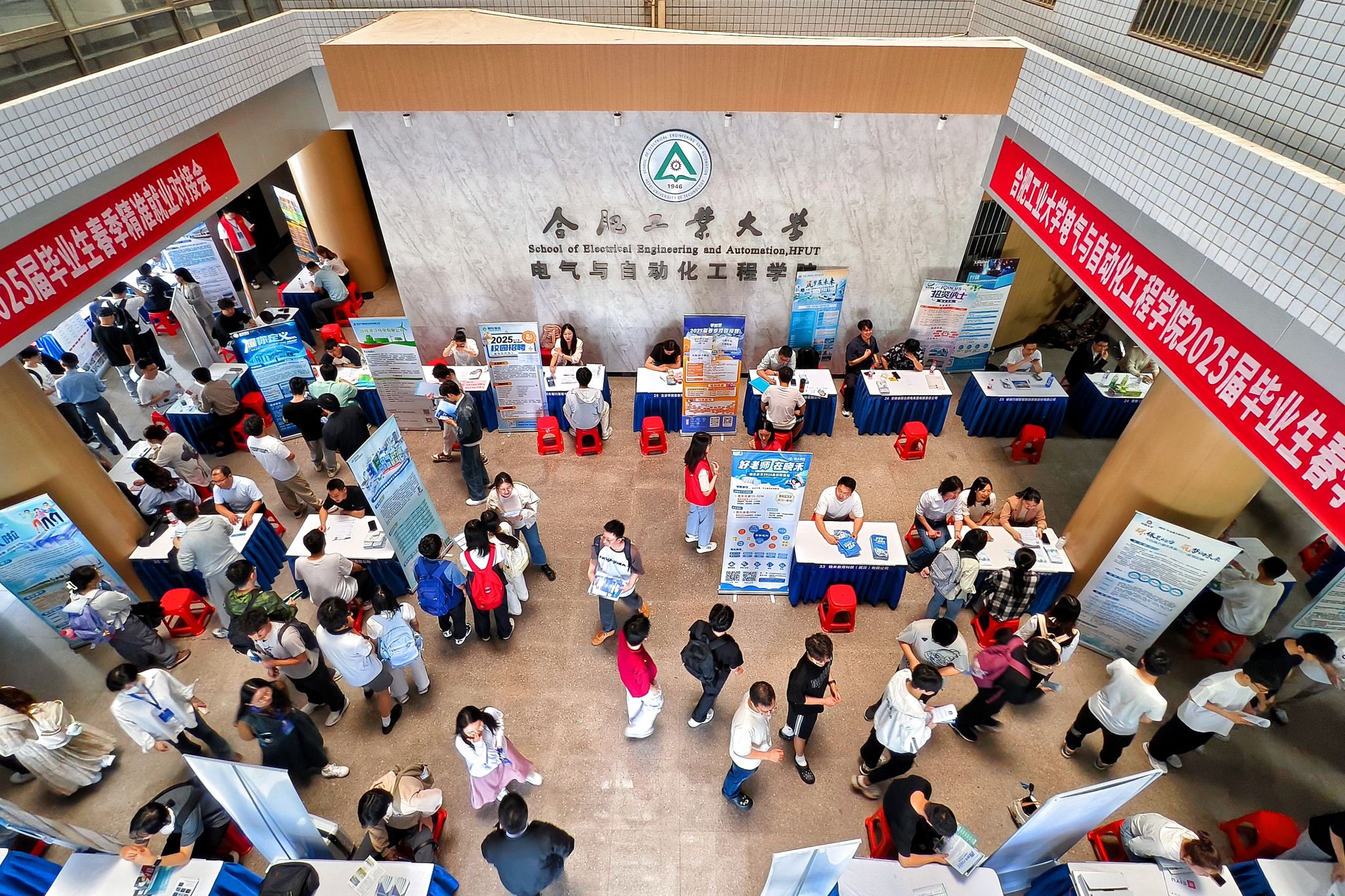 学院结合强弱电专业设置、合宣两市跨校区办学、本研阶段生源规模、高低年级就业实习需求等因素精心遴选,共邀请来自多个城市区域的45家优质企业参会,累计供给就业岗位800余个,涵盖电气、自动化、机器人、智能电网、控制工程等专业及其它多个学科门类。合肥、宣城校区相关年级400余人分时段前往招聘现场,50余名学生已同用人单位初步建立签约意向。