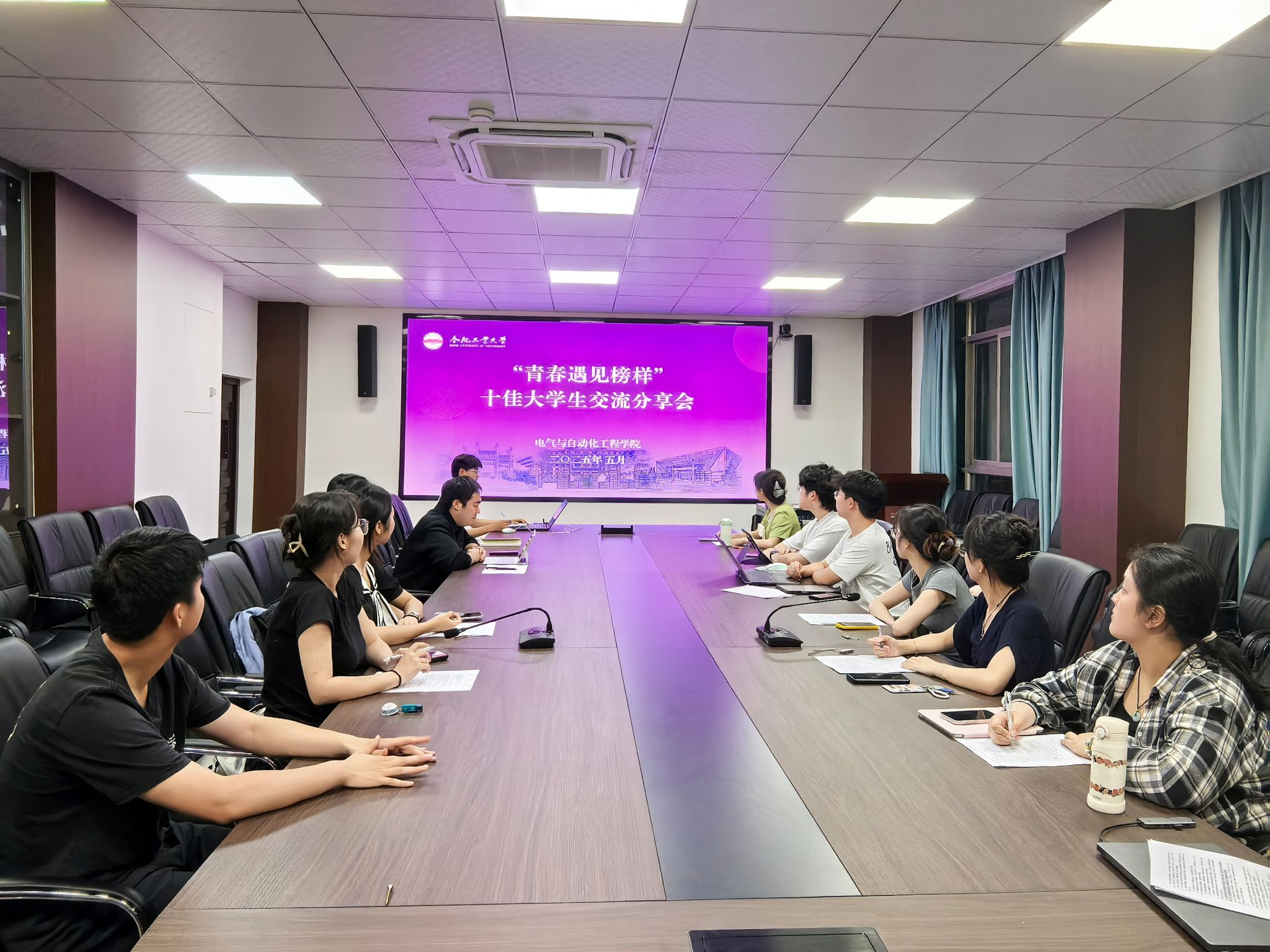 在逸夫楼1004会议室开展“青春遇见榜样”十佳大学生事迹分享会。
