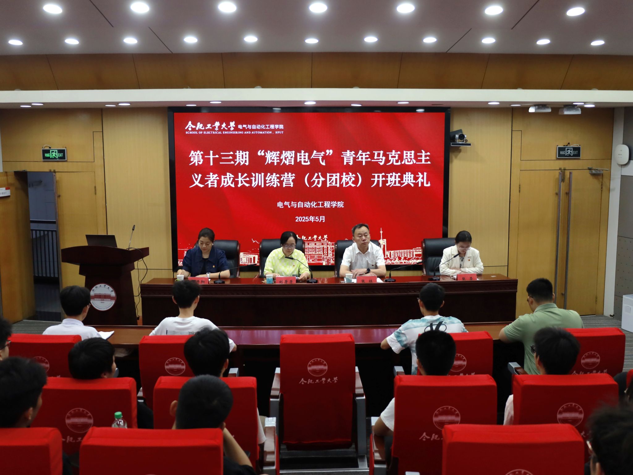 第十三期“辉熠电气”青年马克思主义者成长训练营(分团校)开班仪式在屯溪路校区学术会议中心二楼小报告厅举行,校团委、学院相关负责人,分团校学员参加活动。