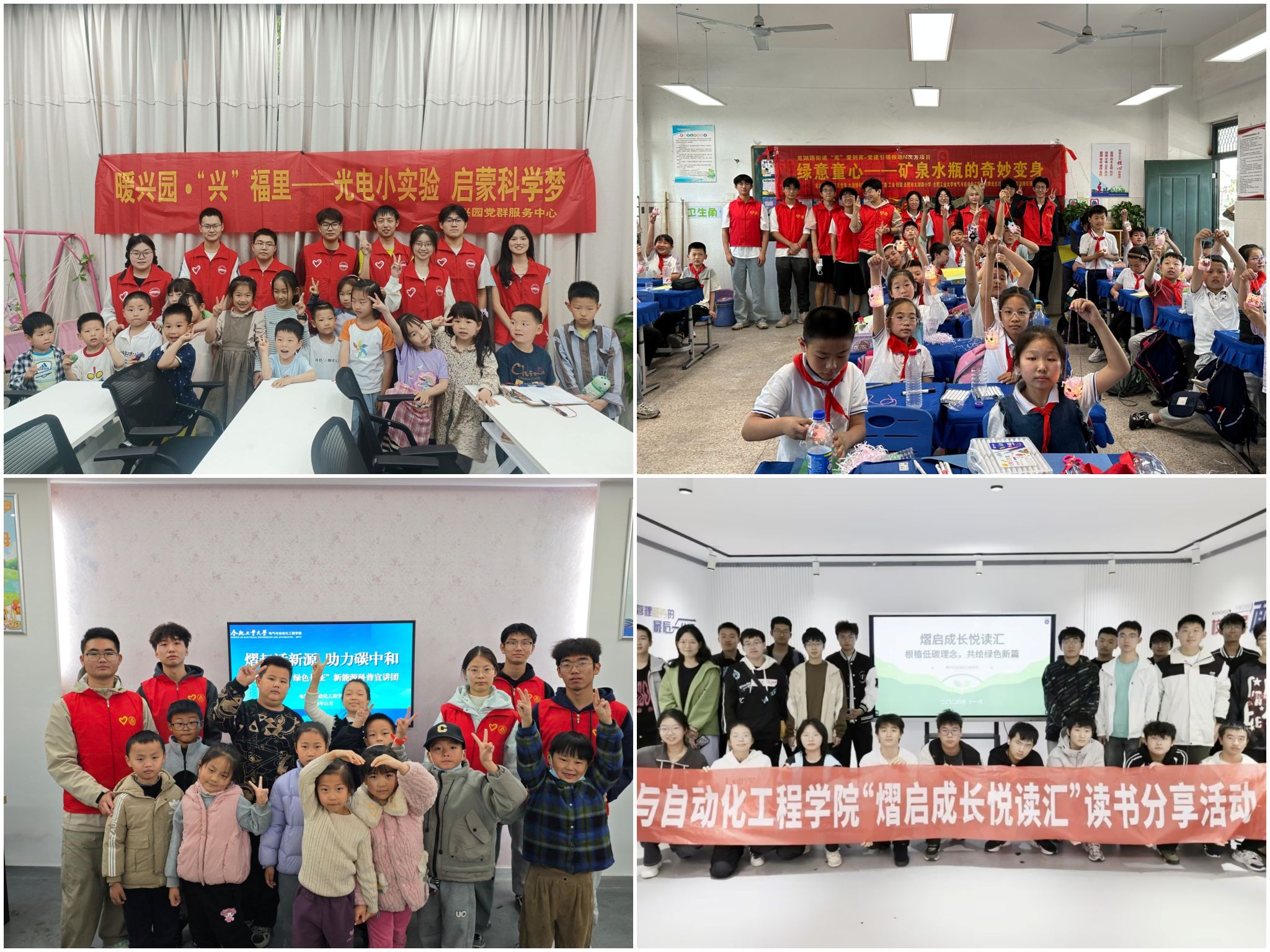 成立绿色精神宣讲团,赴合肥市太湖路小学、方桥社区、兴园社区等地开展科普课堂,讲述“绿色”“节能”“环保”“双碳”的重要意义,带领小朋友们尝试绿色实验,制作创意作品,累计覆盖700余人次。围绕绿色能源发展沿革,积极开展“绿色节能故事诵读”“节能减排主题海报”“绿色节能读书分享会”评选,组织本研各年级、党校学员班学生参加,覆盖500余人次。