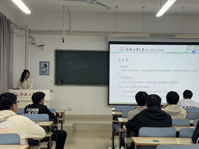 会上,中心指导老师戴梦雅对新成员的加入表示欢迎,系统说明了中心在事务统筹、活动策划、宣传推广与资料整理等方面的主要职责,结合学院新学期工作重点明确了各部门的阶段性任务安排。她希望同学们积极融入、主动担当,在协作中成长,在实践中进步,共同推动中心工作有序开展。中心负责人围绕各部门职责分工做汇报,他们表示要积极发挥中心在学院党团建设与班级协同发展中的纽带作用。