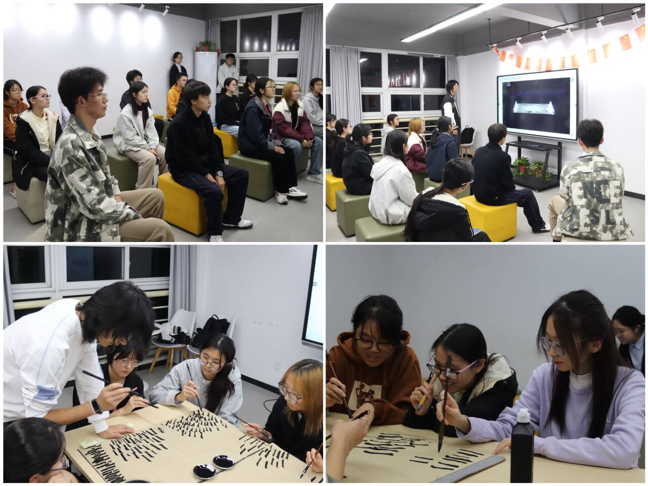 于翡翠湖校区5号楼学生社区沙龙空间举办“‘熠’彩墨韵”书法体验营活动,2025级新生代表参加。