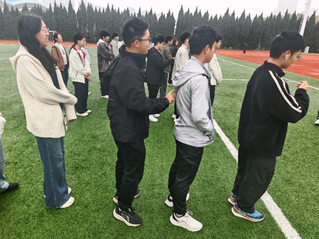 活动以 “互动破冰、深度联结” 为主题,设计六大趣味游戏环节。“异掌同声”环节,在默契配合中打破初识的疏离感;“孙悟空”游戏以轻松诙谐的形式,鼓励同学们卸下心理防线,大胆展现自我;“省份地图” 游戏则以省份地域为纽带,让同学们增进了解、拉近距离;“生日线”“背上传数”“你画我猜” 等团队协作类游戏,引导同学们在默契协作中增强友谊。同学们在分享环节纷纷表示,此次拓展活动让自己在轻松愉悦的氛围中增强对同学们的了解,提升了班级凝聚力和团结协作意识。