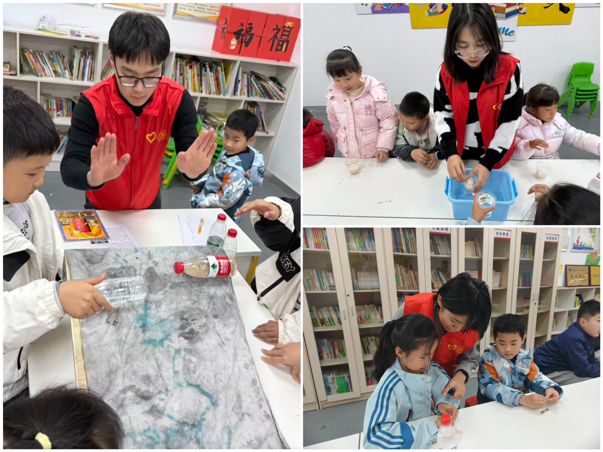 活动现场,阳光志愿服务中心志愿者设置三项趣味科学实验。“小小潜水员”实验中,主讲人演示潜水艇排水上浮、充水下沉原理后,孩子们在志愿者带领下亲身操作,欢乐中明晰科学逻辑;“瓶子赛跑”实验里,孩子们分组观察装满沙子与水的瓶子从同一高度下落的速度差异,在提问交流中了解摩擦力对运动的影响;“鸡蛋浮沉的奥秘”实验中,志愿者通过注水、加盐、搅拌的步骤演示,详解密度变化与物体浮沉的关联,孩子们听得专注,纷纷表示要分享所学知识。三项实验以实操体验激发孩子们的科学兴趣,让科学知识在互动中自然传递。