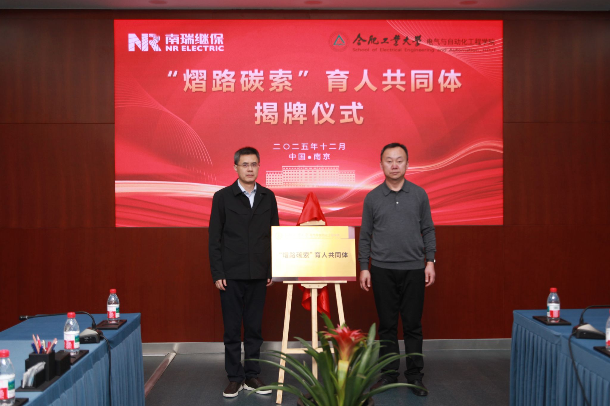 师生代表赴南京南瑞继保电气有限公司,举行“熠路碳索”育人共同体共建暨2025年南瑞继保奖学(教)金颁奖仪式。