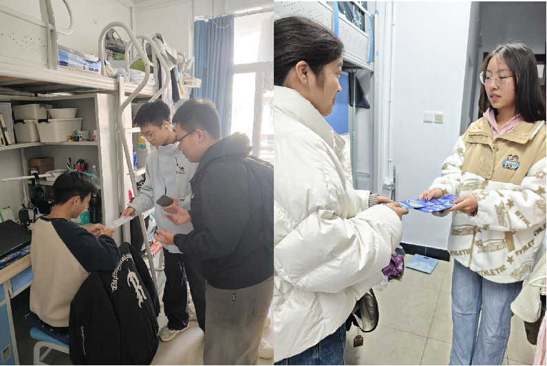 网格联动,构建防控闭环。9月初,学院召开安全工作布置会,强调以网格化管理为抓手,完善“学院统筹—辅导员攻坚—信息员联络—宣传员深入”的电信诈骗防控机制;明确各级岗位职责,以辅导员作为安全工作推进与突发情况响应核心节点,组建年级朋辈反诈宣传员、班级反诈宣传员、寝室网格员三级朋辈团队,形成全域覆盖的责任网络,实现“早发现、早报告、早解决”的闭环管理。