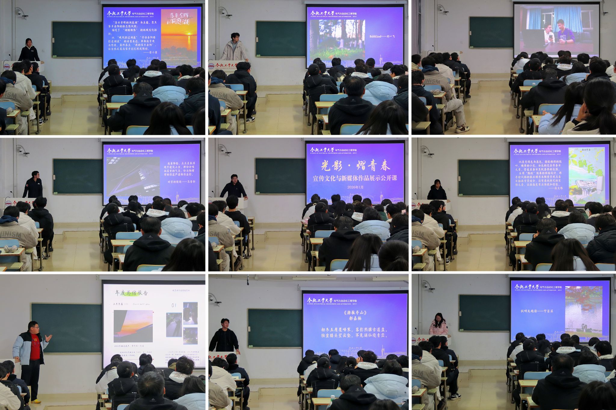专题研修,筑宣传基础。校党委宣传部融媒体管理科科长卫婷婷、校党委宣传部新闻采编科科长雷磊、校党委学生工作部智慧学工科科长洪晓梅、中国科学技术大学党委宣传部宋宇昊、电气学院新媒体指导教师黄子文围绕宣传工作要求、新媒体队伍建设、运营提质增效、摄影摄像技法、校园文化传播等内容作主题报告,通过系统讲解与实例剖析,为宣传骨干提供全方面的专业教学。