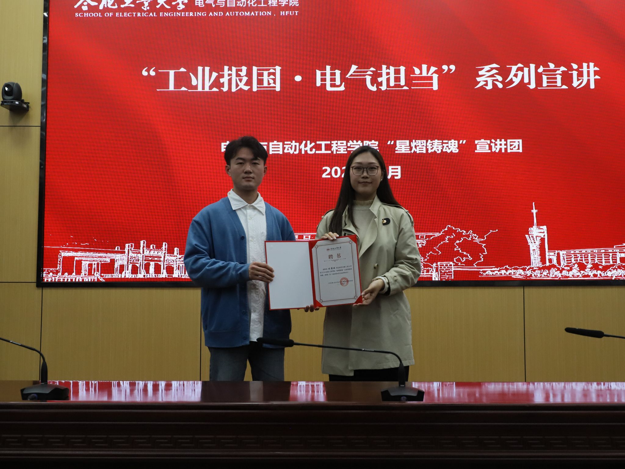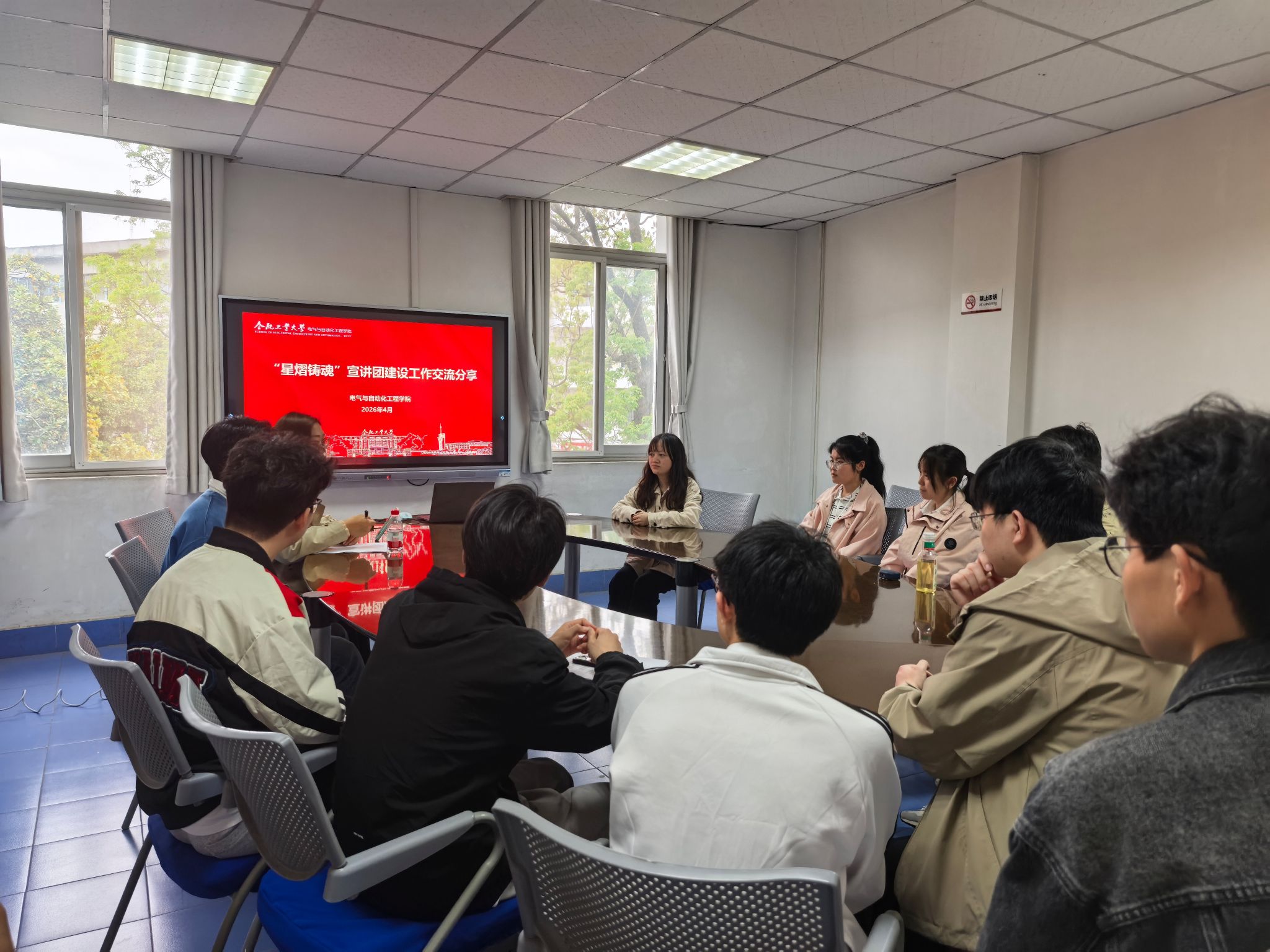 “星熠铸魂”宣讲团“工业报国・电气担当”主题系列宣讲暨结对宣讲交流座谈会在屯溪路校区学术会议中心举行。活动邀请郑州大学博士生宣讲团成员来校开展结对宣讲与分享交流,学院分党校相关负责老师、各学生党支部党员代表及分党校第二十二期大学生入党积极分子班全体学员参与本次活动。