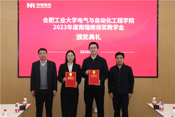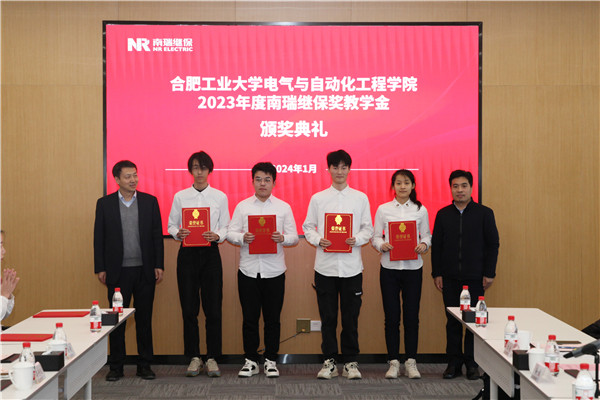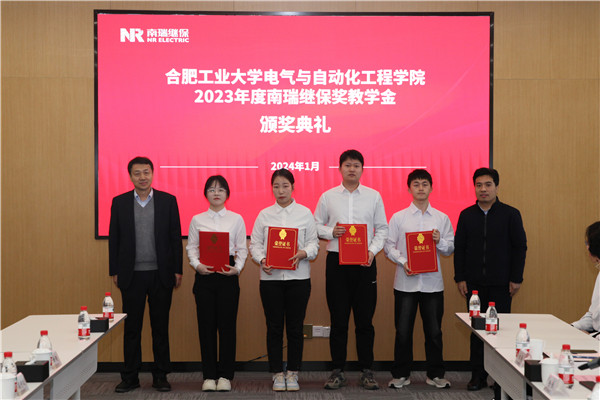 关于表彰2023年度南瑞继保奖学(教)金获得者的决定”。毛仕涛和李丽鹏共同为南瑞继保奖教金的获奖教师代表和获奖的本科生、研究生代表颁奖。