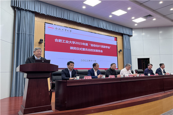 第九届“自动化81奖助学金”颁奖仪式暨杰出校友报告会在学术会议中心一楼大报告厅举行。校党委常委、副校长刘晓平,“自动化81奖助学金”捐赠校友代表、深圳达实智能股份有限公司董事长刘磅,上海达实公司总经理王丹宇,广州科技金融创新投资控股有限公司资深投资经理杨林,合肥华星集团董事长吴延陵,安徽省电力经济技术研究院院长李淮海等出席仪式。