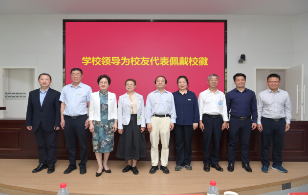 与会领导为校友代表佩戴校徽