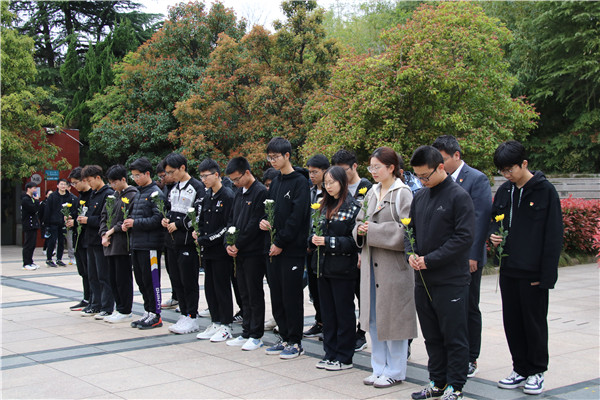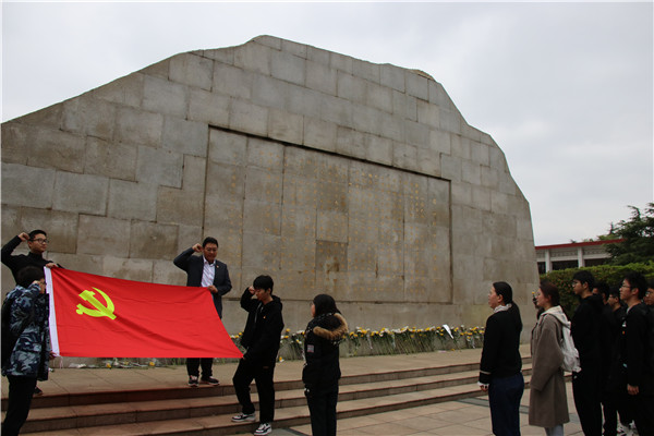 全体师生党员代表在烈士纪念碑前列队整齐,向革命先烈默哀三分钟,随后学生党员们心怀哀悼与感恩,向烈士纪念碑三鞠躬并敬献鲜花。最后,在党旗下,全体师生高举右拳,在第四支部书记伍钰婷同学的带领下,重温入党誓词,铿锵有力的青春之音,告慰先烈在天之灵,彰显了我们新时代学生党员将不忘历史,不忘前辈的牺牲,将传承革命先烈不怕困难、无畏挫折的革命精神。