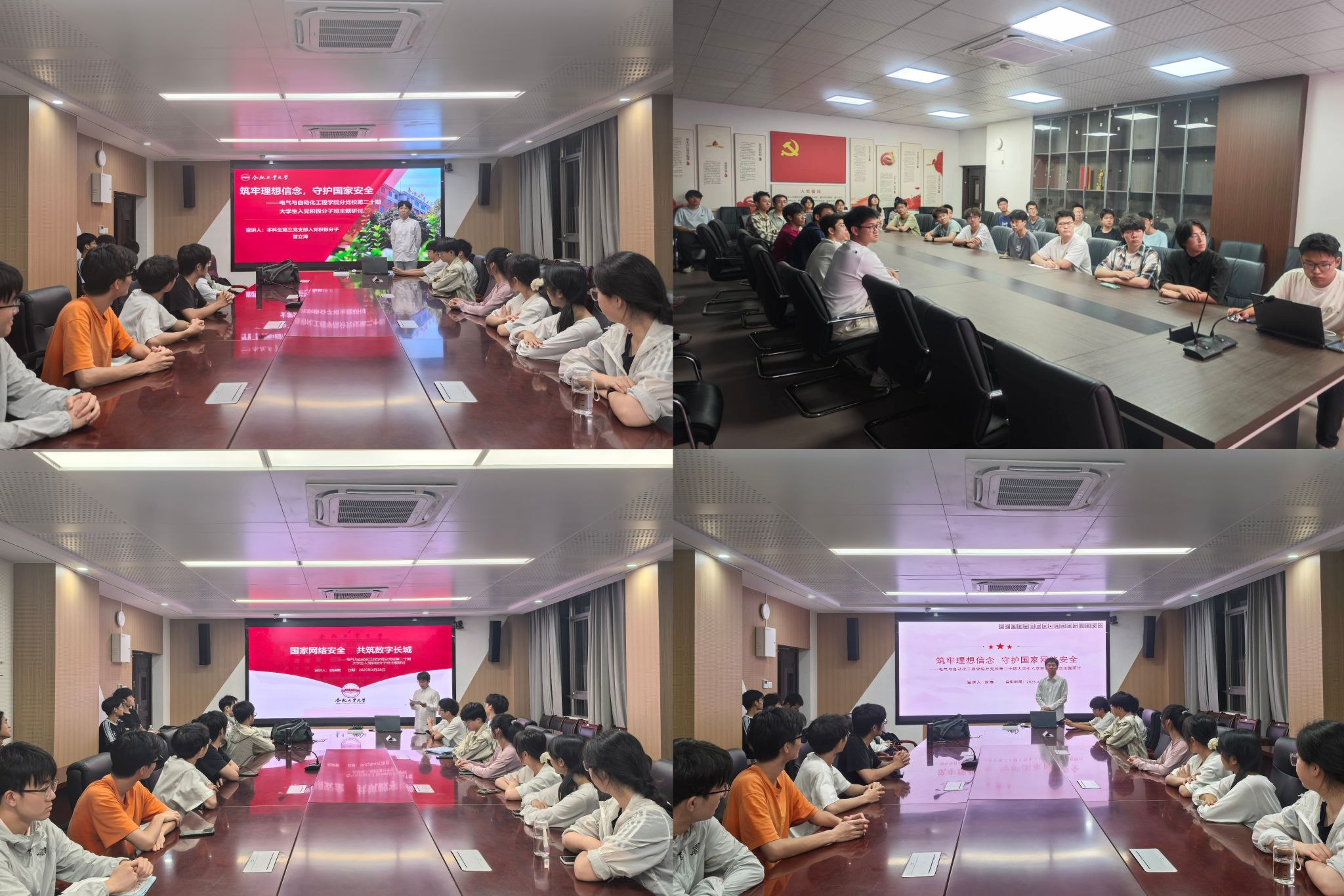 组织本科生、研究生入党积极分子在逸夫楼会议室开展“筑牢理想信念,守护国家安全”主题研讨交流,160余名同学参与活动,分别围绕国家政治安全、军事安全、国土安全、文化安全、社会安全、网络安全、数据安全、人工智能安全等主题进行交流发言。